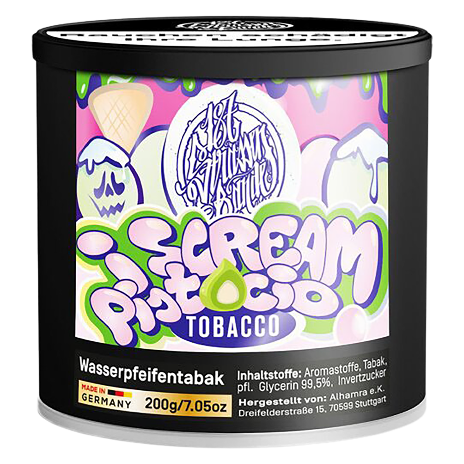 Bei der Verwendung in einer Wasserpfeife sind die gesetzlichen Vorgaben für Tabakerzeugnisse zu beachten. Die Angaben zu Inhalt, Blend und Aromen dienen der sachlichen Information über das Produkt 187 Tobacco 200g - I Scream Pistacio von 187 Tobacco.