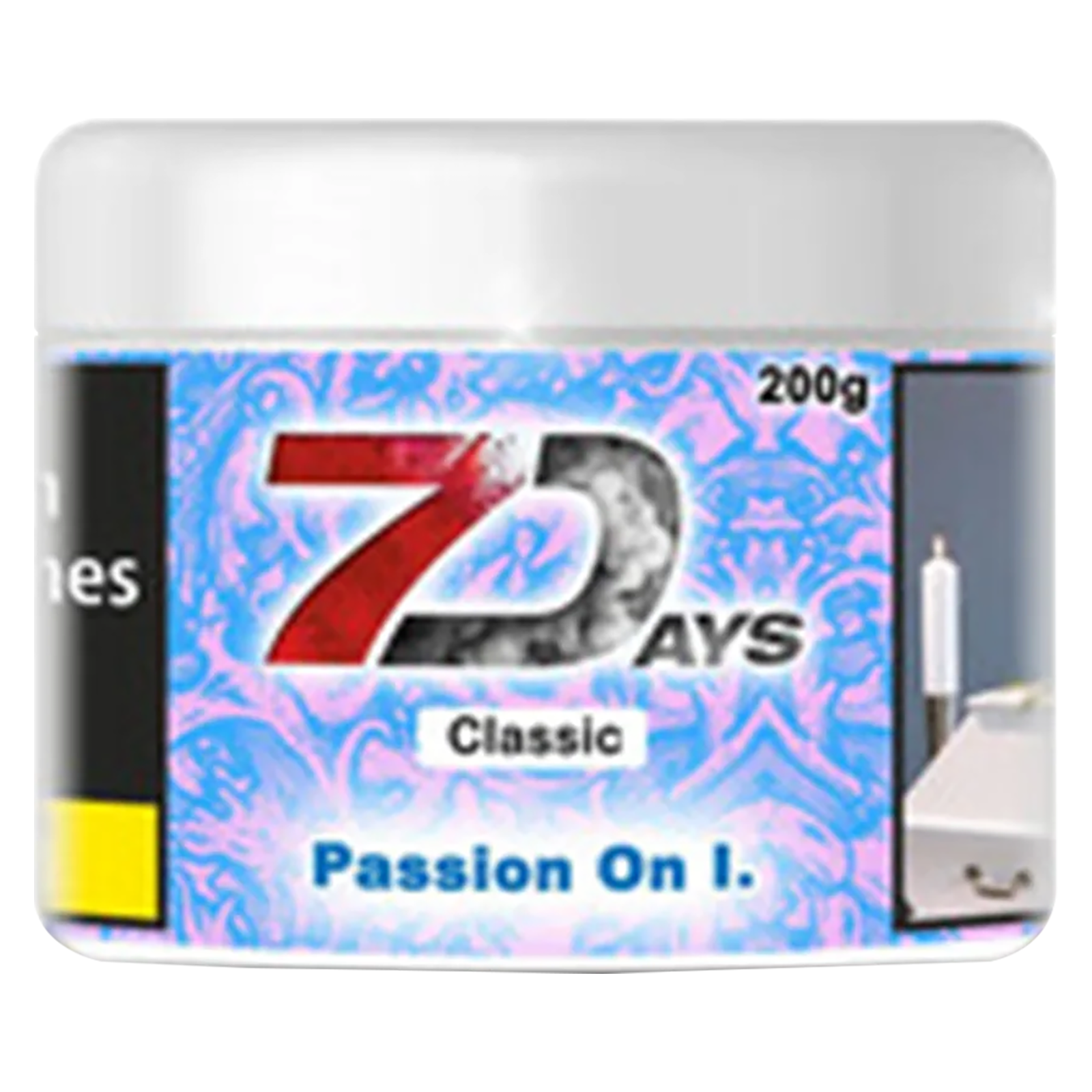 7Days 200g - Passion on I. ist eine hochwertige Tabakmischung für anspruchsvolle Shisha-Genießer. Die aromatische Kombination aus exotischer Maracuja, süßer Kirsche und einer angenehm kühlenden Ice-Note sorgt für ein unvergleichlich fruchtig-erfrischendes Rauchvergnügen. Dieser Premium-Tabak aus dem Hause 7Days überzeugt nicht nur geschmacklich, sondern auch durch seine herausragende Qualität.