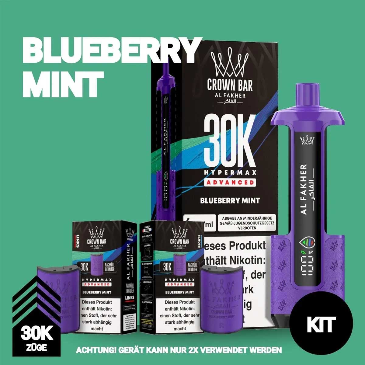 Produktinformationen "Al Fakher 30K Hypermax Akku + 2x Pod 6mg - Blueberry Mint"