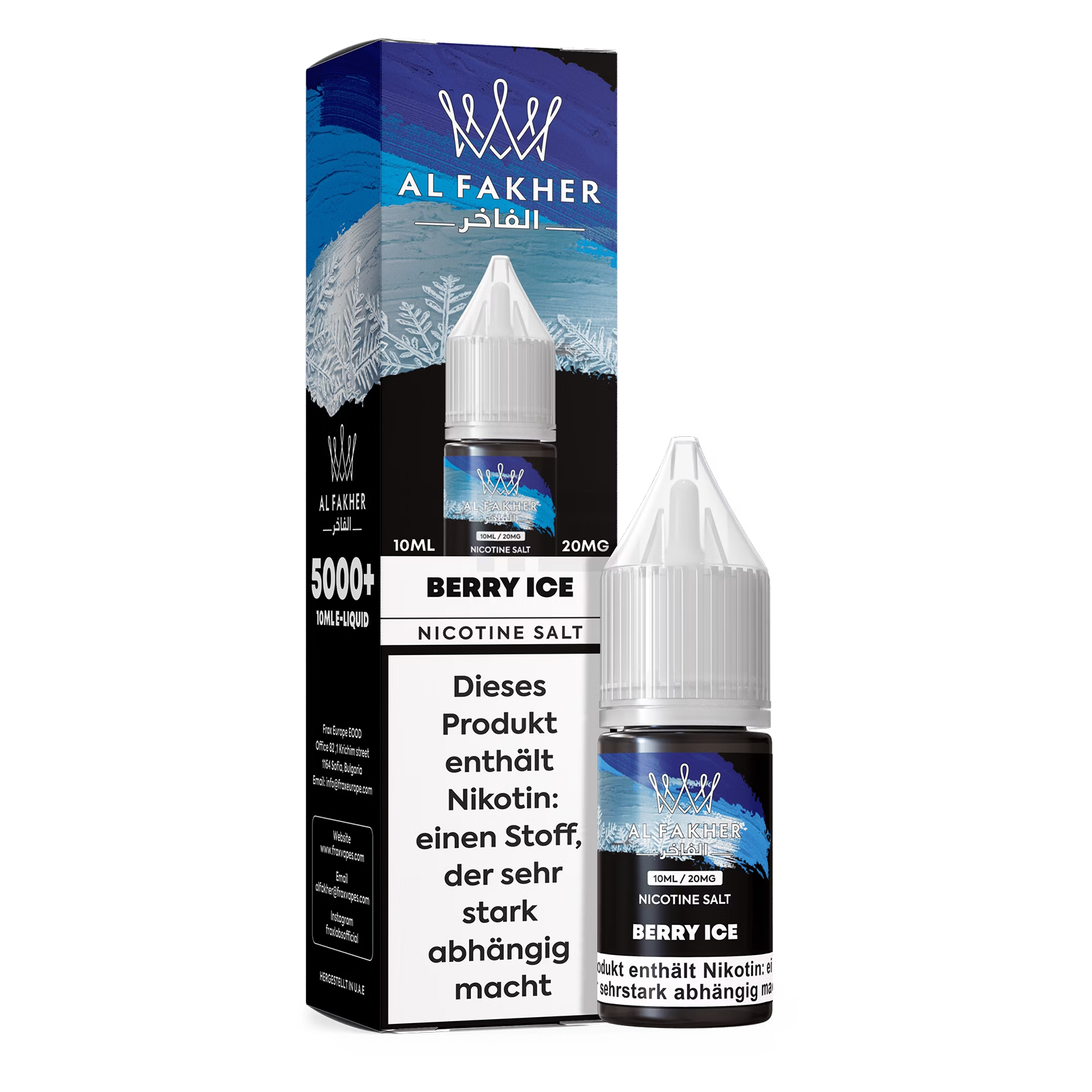 Al Fakher Liquid 10ml - Berry Ice 20mg von Al Fakher ist ein Liquid mit einem definierten Nikotingehalt und einem festgelegten Inhaltsvolumen, das für den Einsatz in dafür geeigneten Geräten vorgesehen ist.