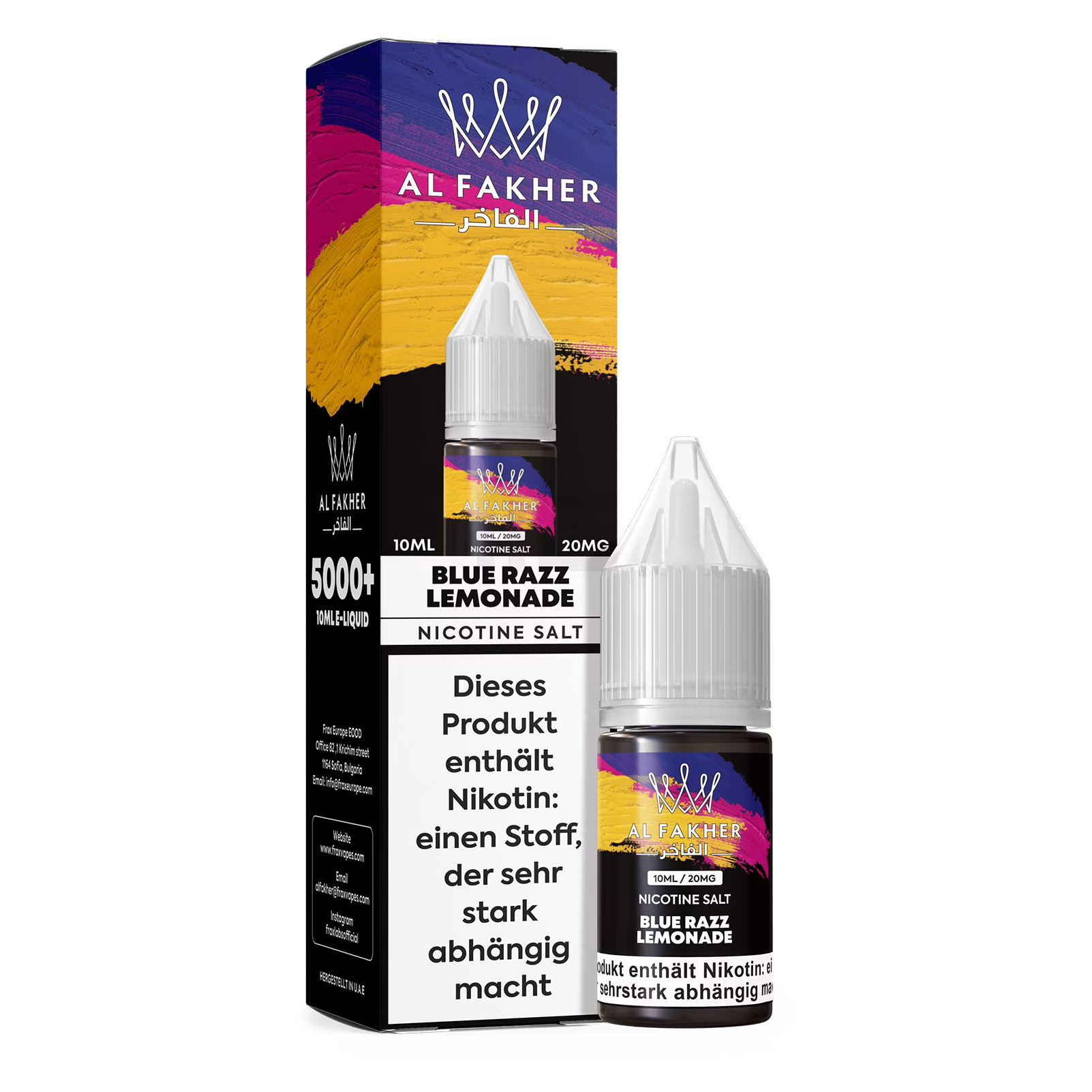 Al Fakher Liquid 10ml - Blue Razz Lemonade 20mg von Al Fakher ist ein nikotinhaltiges Liquid für den Einsatz in dafür geeigneten E-Zigaretten und E-Shisha-Systemen.