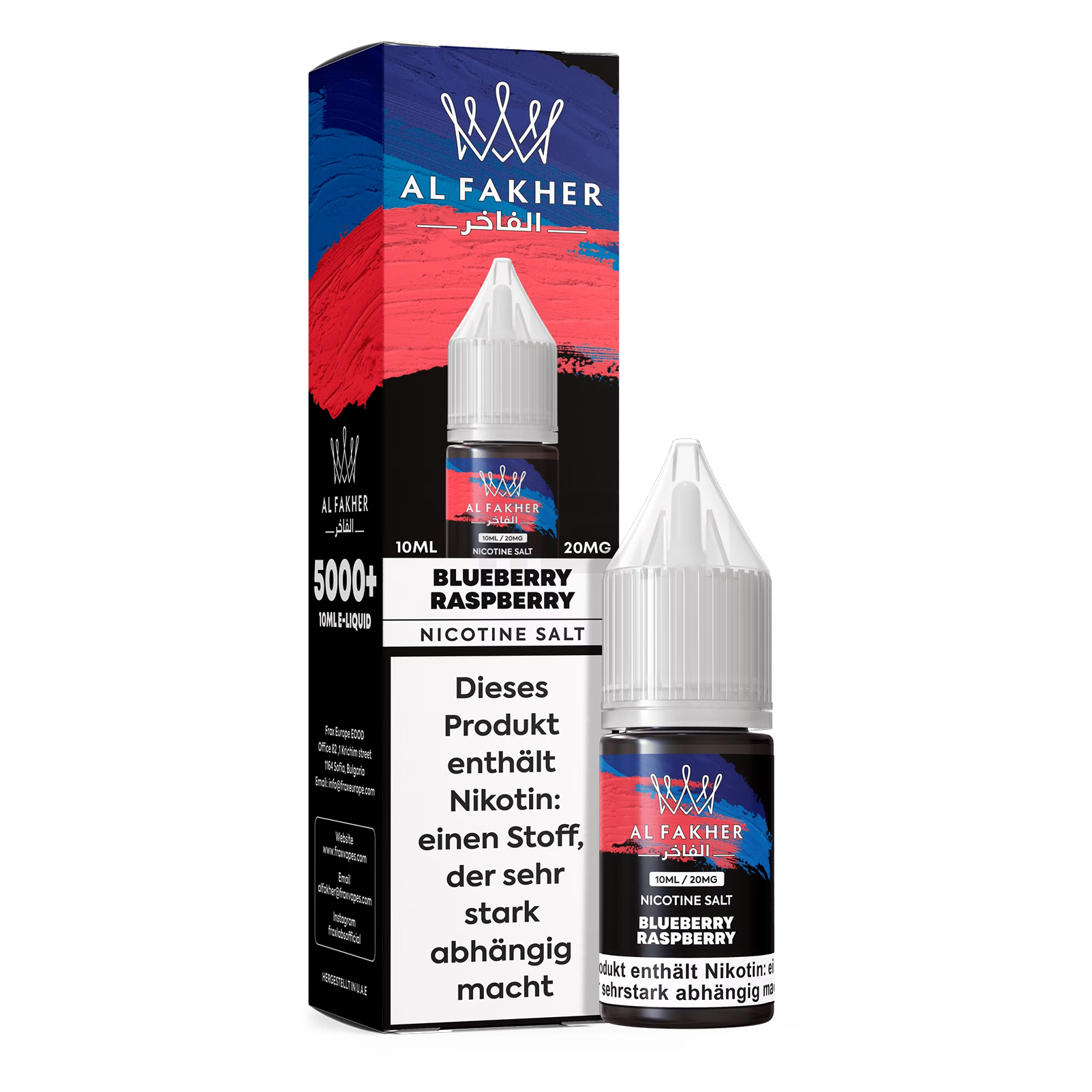 Al Fakher Liquid 10ml - Blueberry Raspberry 20mg von Al Fakher ist ein nikotinhaltiges Liquid für den Einsatz in E-Zigaretten im Umfeld von Wasserpfeife und ähnlichen Inhalationsprodukten.