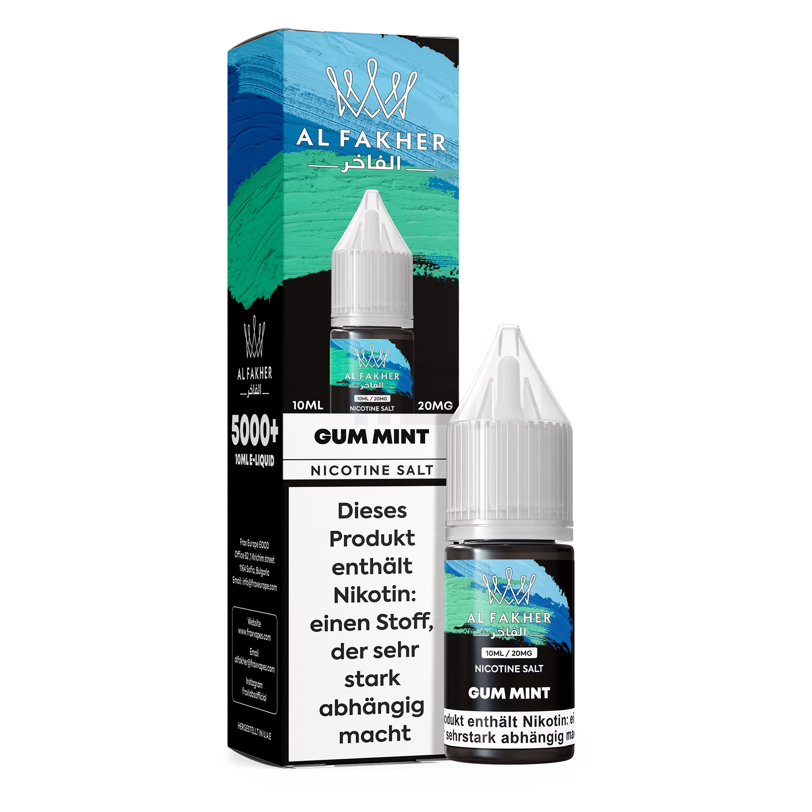 Al Fakher Liquid 10ml - Gum Mint 20mg von Al Fakher ist ein Liquid für elektronische Inhalationssysteme, das in Zusammenhang mit Wasserpfeife und E-Zigaretten verwendet werden kann.