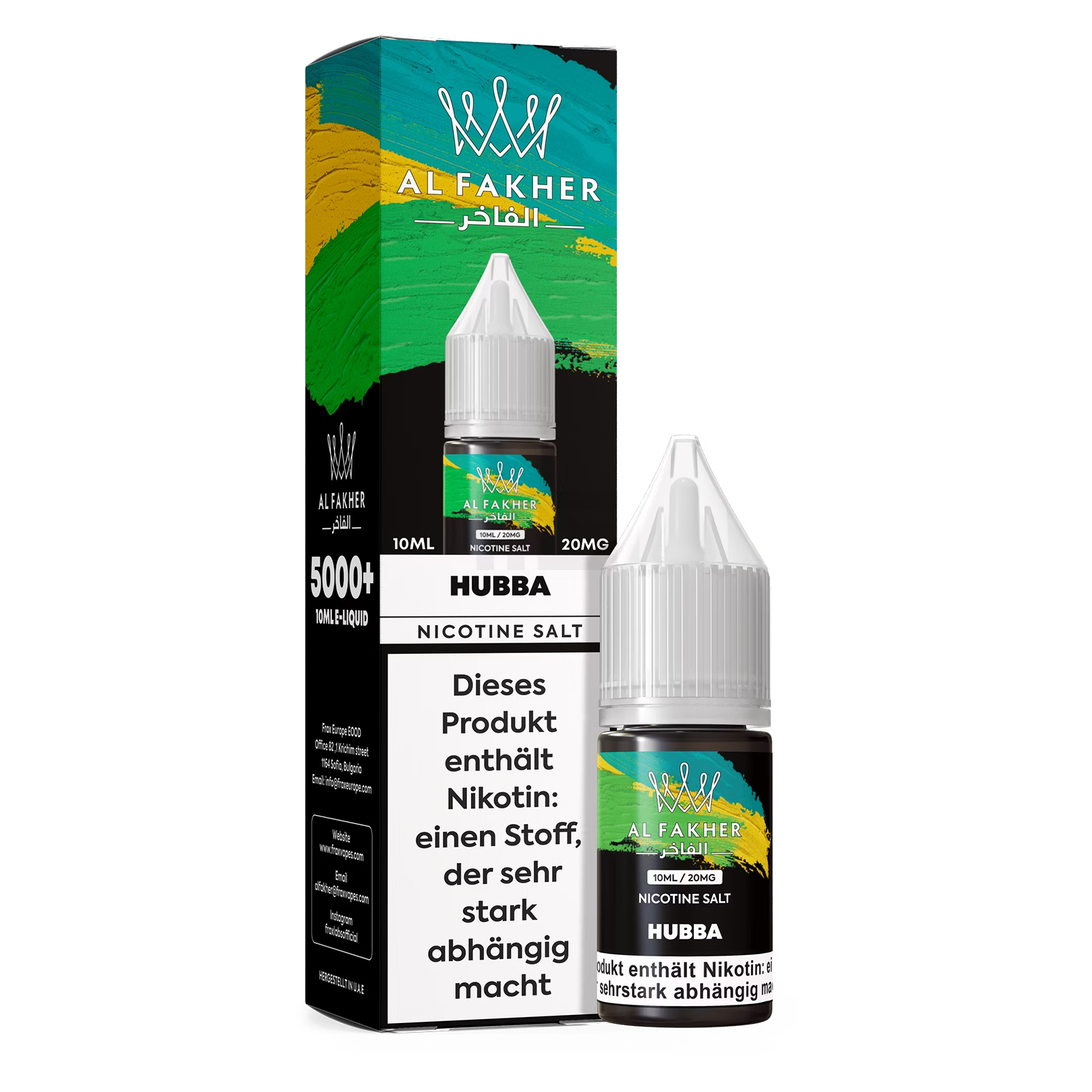 Das Produkt Al Fakher Liquid 10ml - Hubba 20mg bietet ein Füllvolumen von 10ml und enthält einen Nikotingehalt von 20mg/ml.