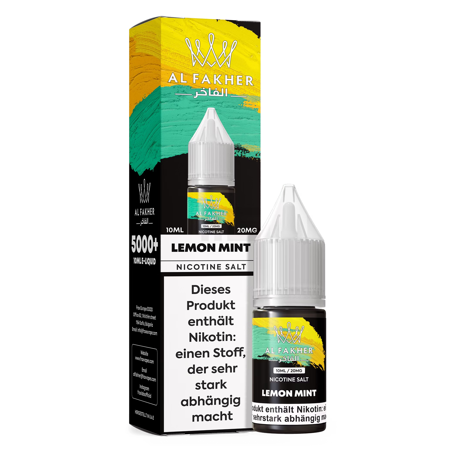 Al Fakher Liquid 10ml - Lemon Mint 20mg von Al Fakher ist ein nikotinhaltiges Produkt für die Nutzung in entsprechenden Geräten, die in Verbindung mit einer Wasserpfeife eingesetzt werden können.
