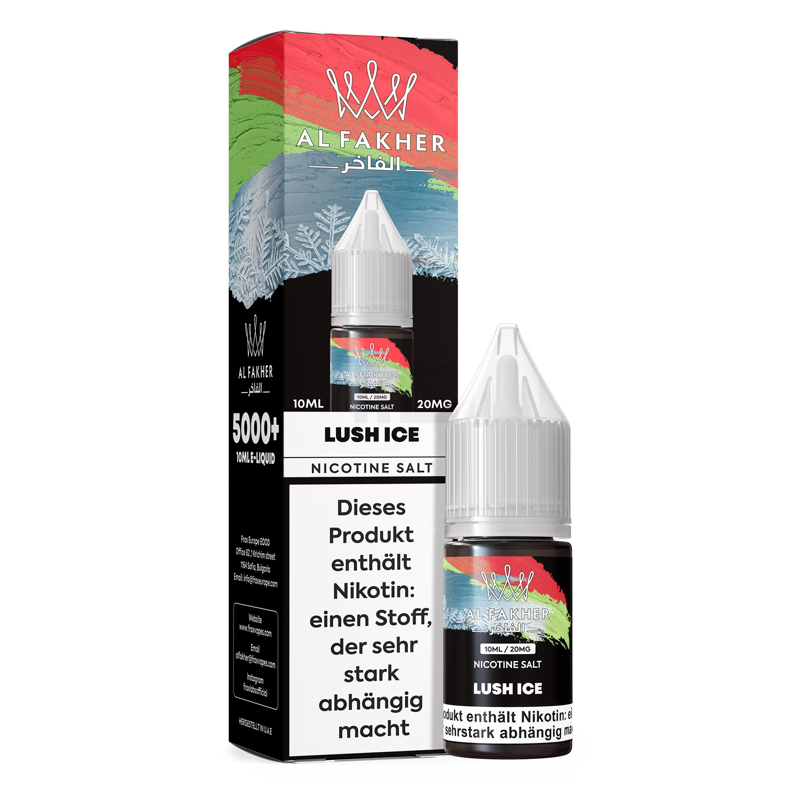 Al Fakher Liquid 10ml - Lush Ice 20mg von Al Fakher ist ein nikotinhaltiges Liquid für den Gebrauch in dafür geeigneten E-Zigaretten- und Verdampfersystemen.