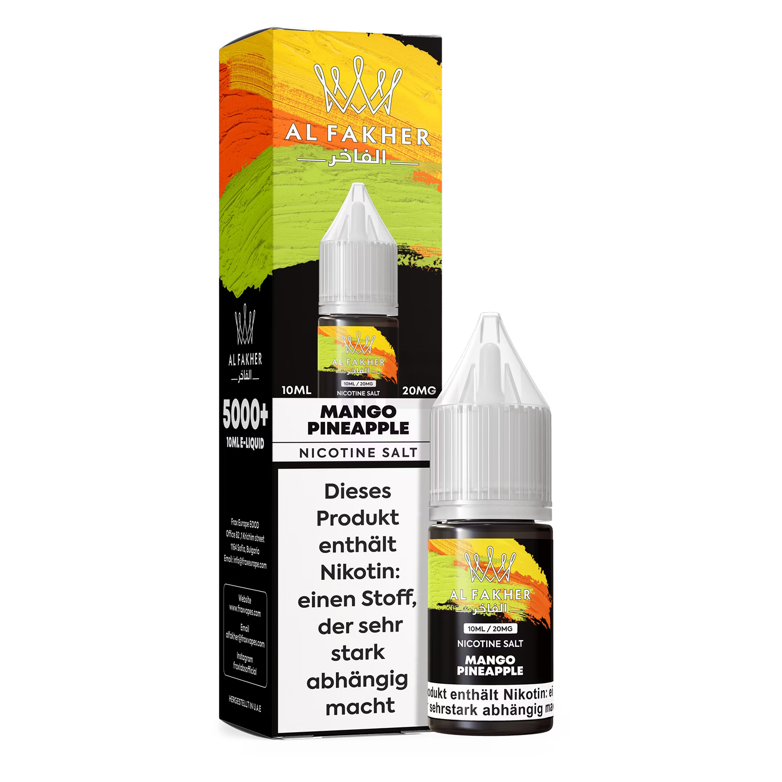 Al Fakher Liquid 10ml - Mango Pineapple 20mg von Al Fakher ist ein Liquid für den Einsatz in E-Zigaretten und ähnlichen Verdampfersystemen, die häufig ergänzend zur Nutzung einer Wasserpfeife verwendet werden.