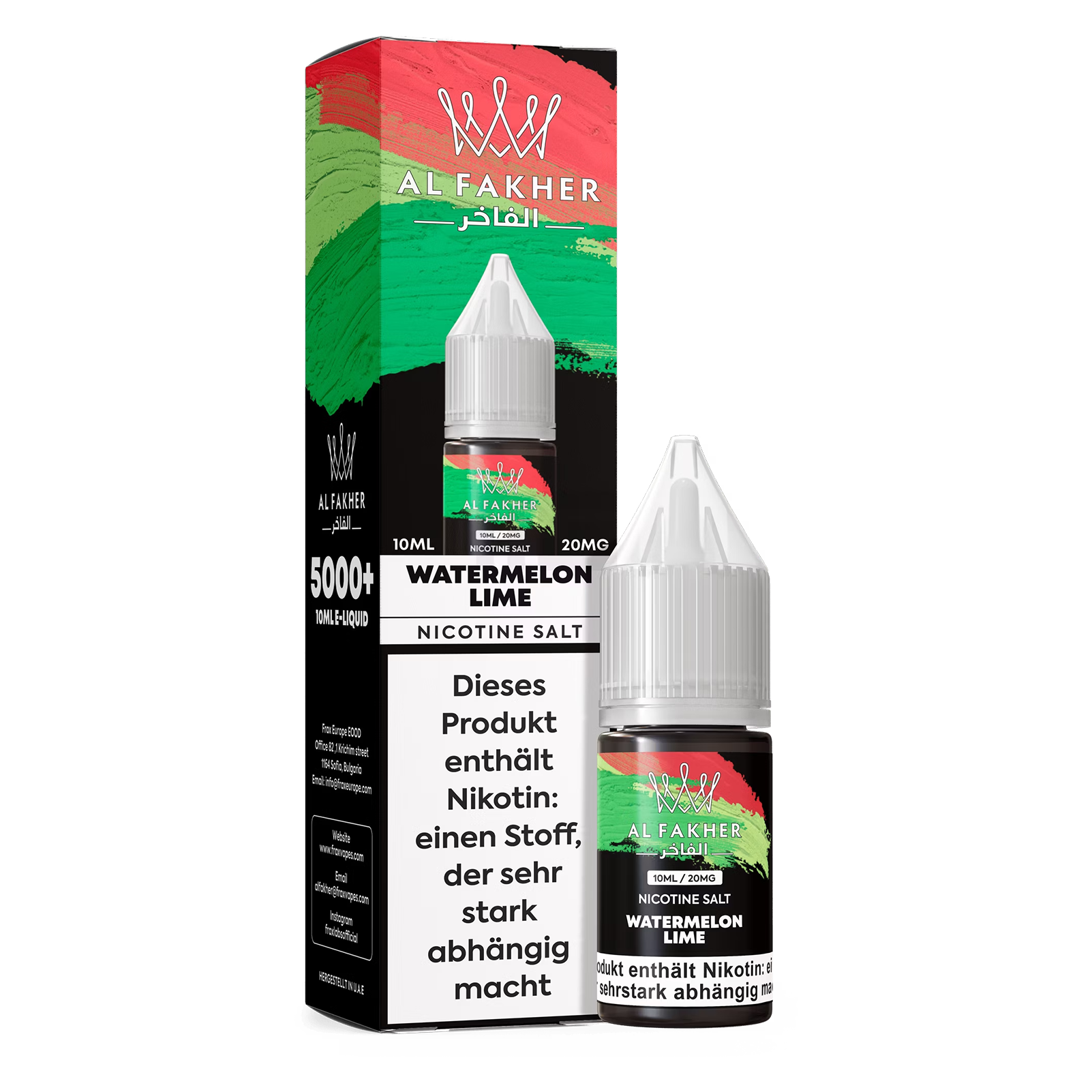 Al Fakher Liquid 10ml - Watermelon Lime 20mg von Al Fakher ist ein Liquid für den Einsatz in Systemen, die mit Wasserpfeife in Verbindung stehen, und richtet sich an Anwender ab dem gesetzlich zulässigen Mindestalter.