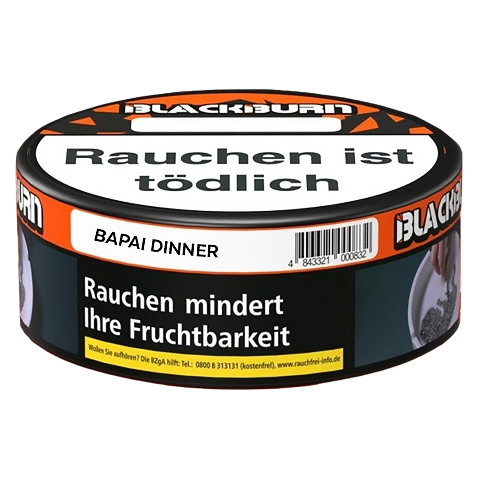 Blackburn 100g - Bapai Dnner wird in einer Menge geliefert, die für den üblichen Gebrauch in handelsüblichen Wasserpfeifenportionen ausgelegt ist. Die Nutzung erfolgt in Kombination mit einem Tabakkopf und weiteren Komponenten, die für den Betrieb einer Wasserpfeife erforderlich sind.