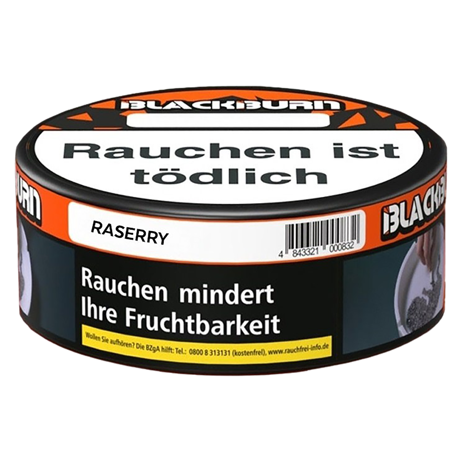 Blackburn 100g - Raserry ist zur Verwendung als Wasserpfeifentabak vorgesehen, der in einem Tabakkopf platziert und zusammen mit einer Wasserpfeife genutzt wird. Die Angaben beziehen sich ausschließlich auf die Bezeichnung, den Inhalt von 100g und das Aroma Himbeere.