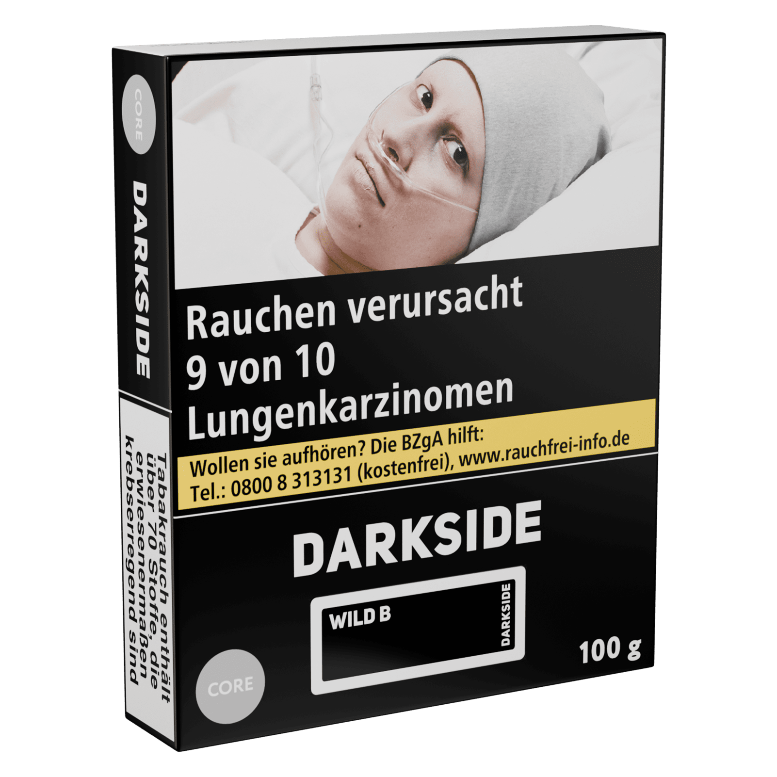 Bei der Verwendung von Darkside Core 100g - Wild B sind die einschlägigen Bestimmungen für Tabakerzeugnisse sowie alle nationalen Vorschriften zu beachten. Die Aufbewahrung hat außerhalb der Reichweite von Minderjährigen und gemäß den Herstellerangaben von Darkside zu erfolgen.