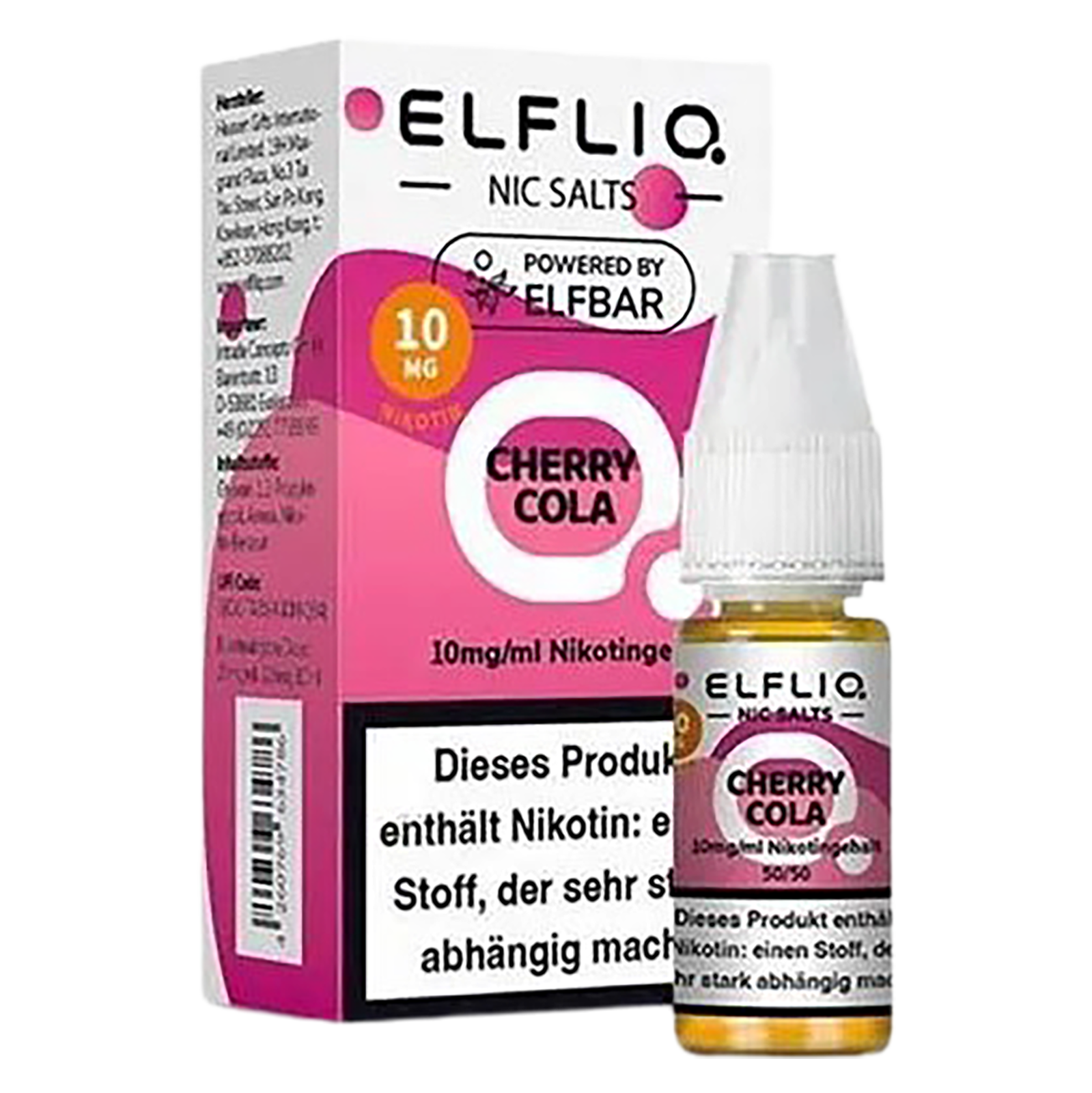 Elfliq - Nikotinsalz Liquid 10mg/ml - Cherry Cola von Elfliq ist ein nikotinhaltiges Liquid für den Einsatz in geeigneten E-Zigaretten und Verdampfern.