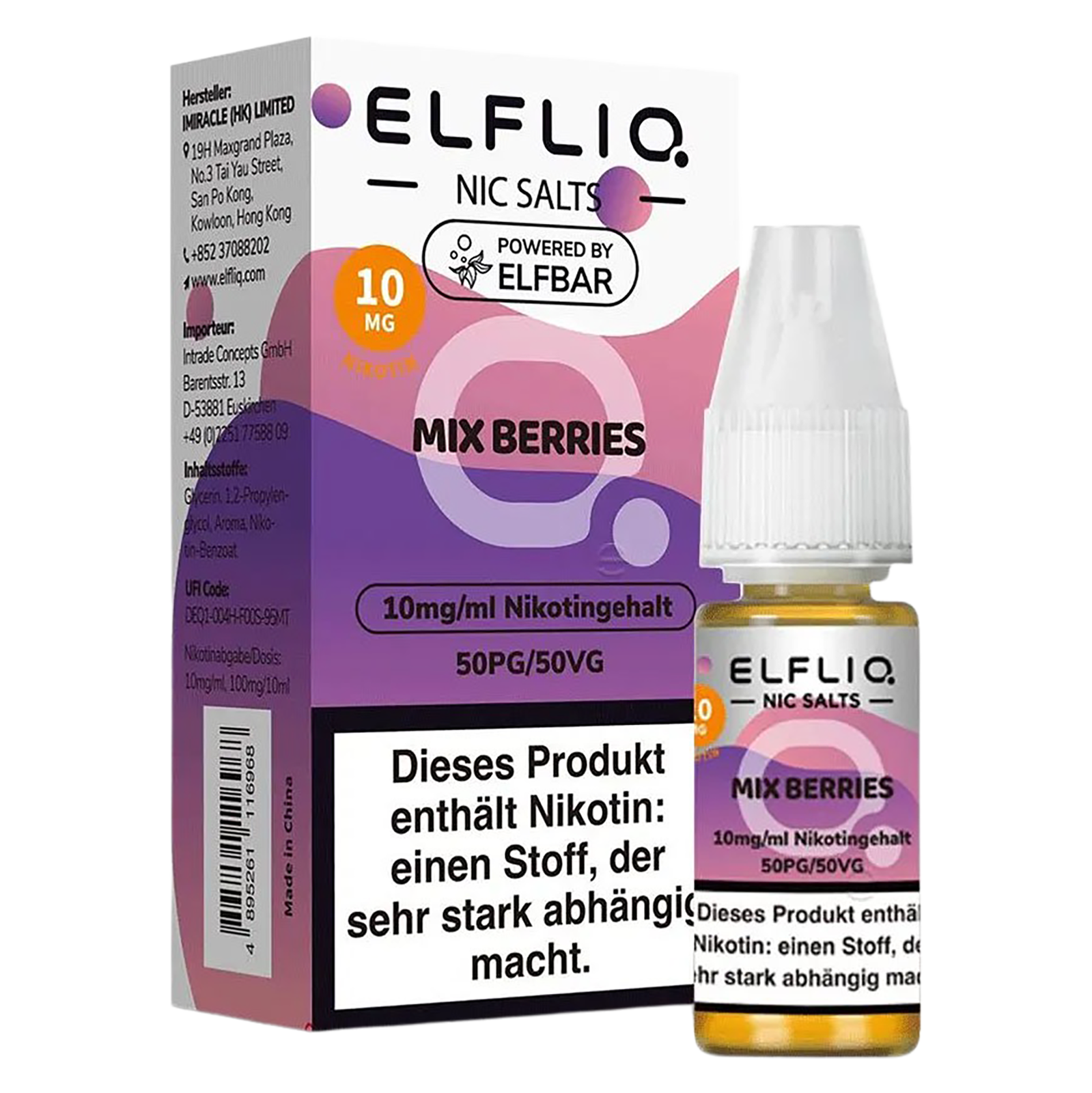 Elfliq - Nikotinsalz Liquid 10mg/ml - Mix Berries von Elfliq ist ein nikotinhaltiges Liquid zur Verwendung in dafür geeigneten E-Zigaretten-Systemen.
