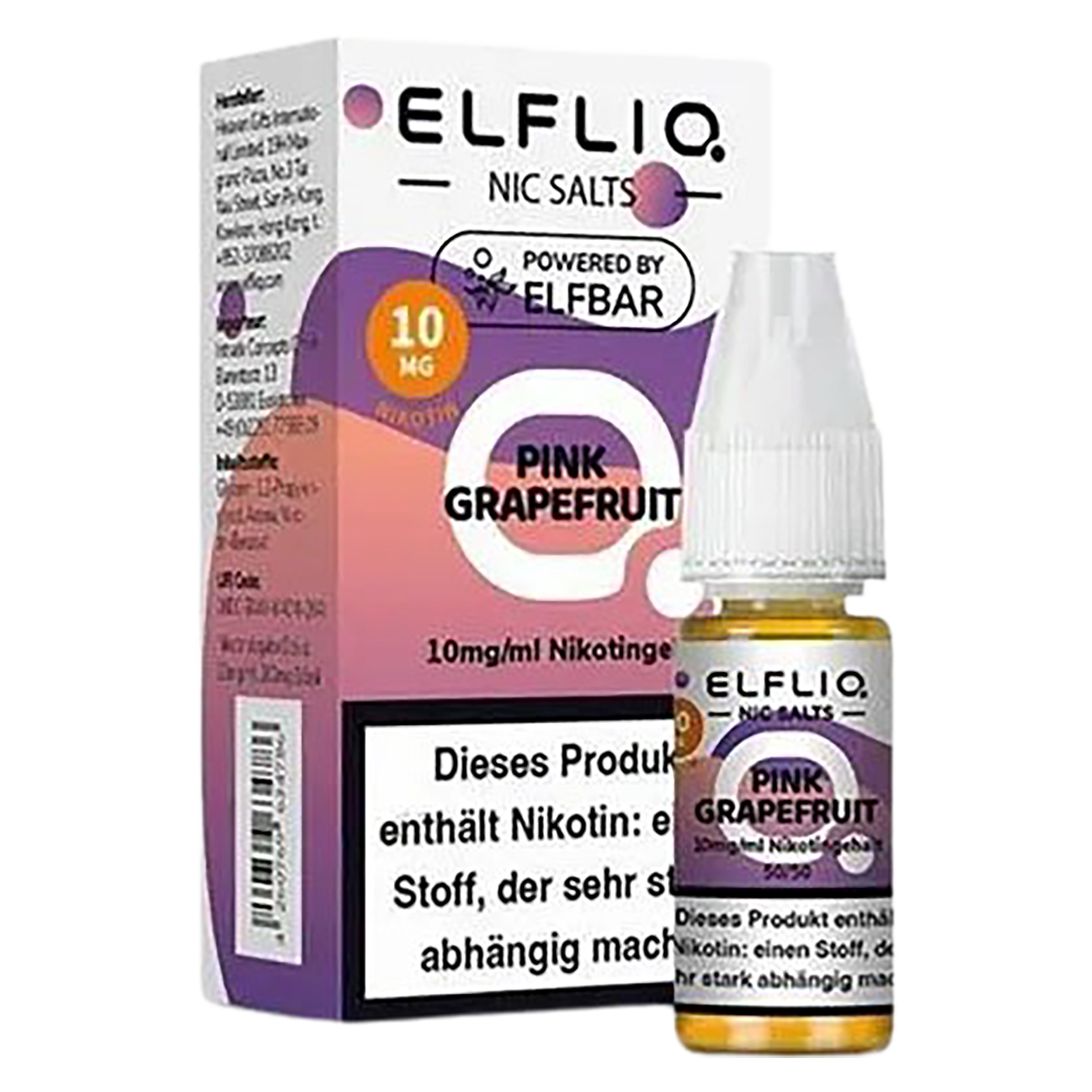 Elfliq - Nikotinsalz Liquid 10mg/ml - Pink Grapefruit bietet ein intensives Fruchterlebnis für Liebhaber moderner Shisha-Zubehörlösungen und E-Liquids. Mit seinem frischen, leicht herben Grapefruit-Aroma überzeugt dieses Nikotinsalz Liquid anspruchsvolle Dampfer, die Wert auf Geschmack und Qualität legen. Es eignet sich ideal für den Einsatz in Pod-Systemen und bietet – dank Nikotinsalz-Technologie – ein besonders weiches Zugverhalten ohne Kratzen im Hals.