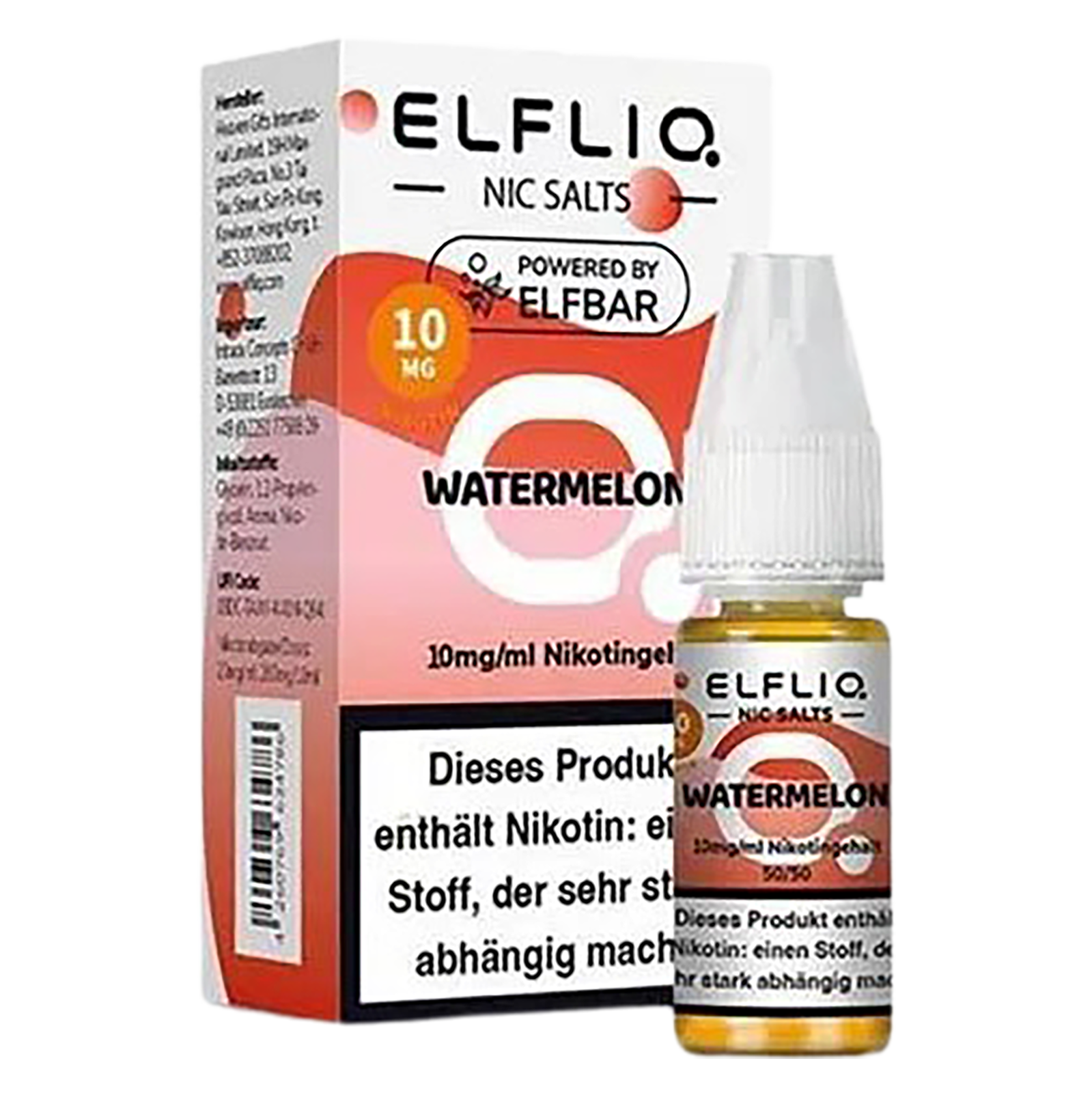 Elfliq - Nikotinsalz Liquid 10mg/ml - Watermelon von Elfliq ist ein Liquid mit Nikotinsalz für den Einsatz in geeigneten E-Zigaretten und Verdampfern.