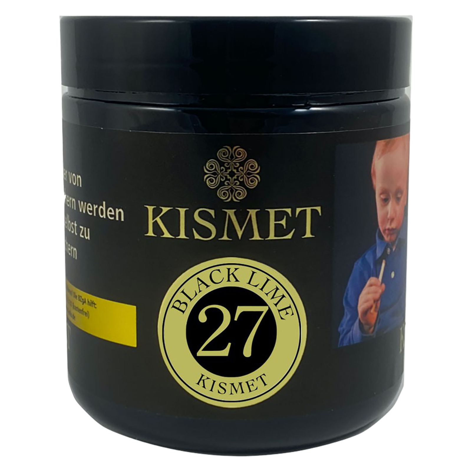 Kismet 200g - Black Lime (27) von kismet ist ein Tabakerzeugnis für die Nutzung in einer Wasserpfeife. Die Bezeichnung des Artikels und der Marke dient der eindeutigen Identifikation innerhalb eines Sortiments mit verschiedenen Tabaksorten.