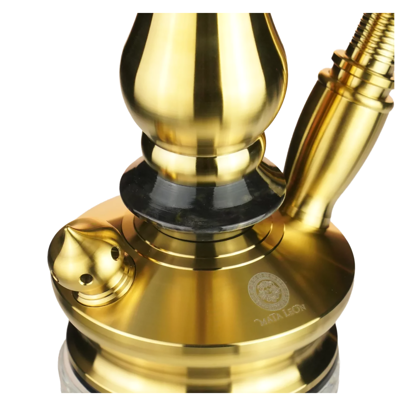 Die Mata Leon Shisha - Midas Black vereint modernes Design mit hochwertiger Verarbeitung und bietet ein erstklassiges Raucherlebnis für anspruchsvolle Shisha-Liebhaber. Gefertigt aus robustem Edelstahl, überzeugt diese Wasserpfeife durch ihre Langlebigkeit, Korrosionsbeständigkeit und einfache Pflege. Die edle Farbkombination aus Gold und Schwarz verleiht der Shisha einen luxuriösen Look und macht sie zum stilvollen Highlight in jeder Shisha-Session.