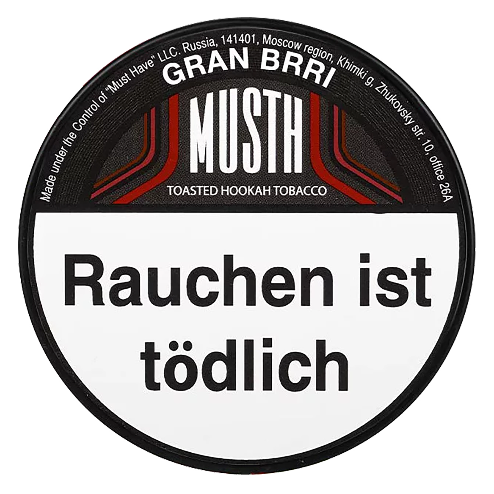 Must H 125g - Gran Brri von Must H ist ein Tabakerzeugnis für die Verwendung in einer Wasserpfeife. Die Bezeichnung fasst Produktname und Hersteller zusammen und ermöglicht eine eindeutige Zuordnung innerhalb unterschiedlicher Tabakköpfe und Setups.