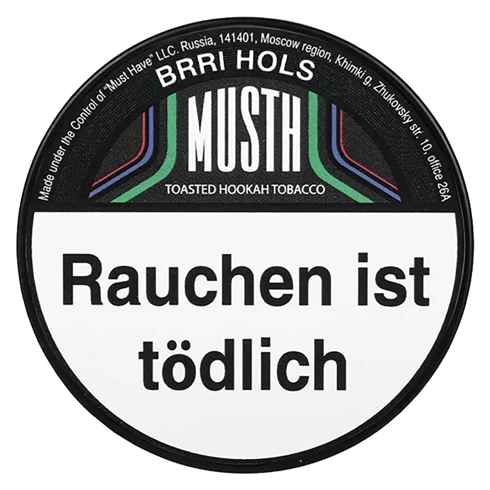 Must H 25g - Brri Hols ist für den Gebrauch in üblichen Setups mit Tabakkopf und Wasserpfeife konzipiert. Die Nutzung erfolgt ausschließlich gemäß den gesetzlichen Bestimmungen und den produktspezifischen Hinweisen des Herstellers Must H.