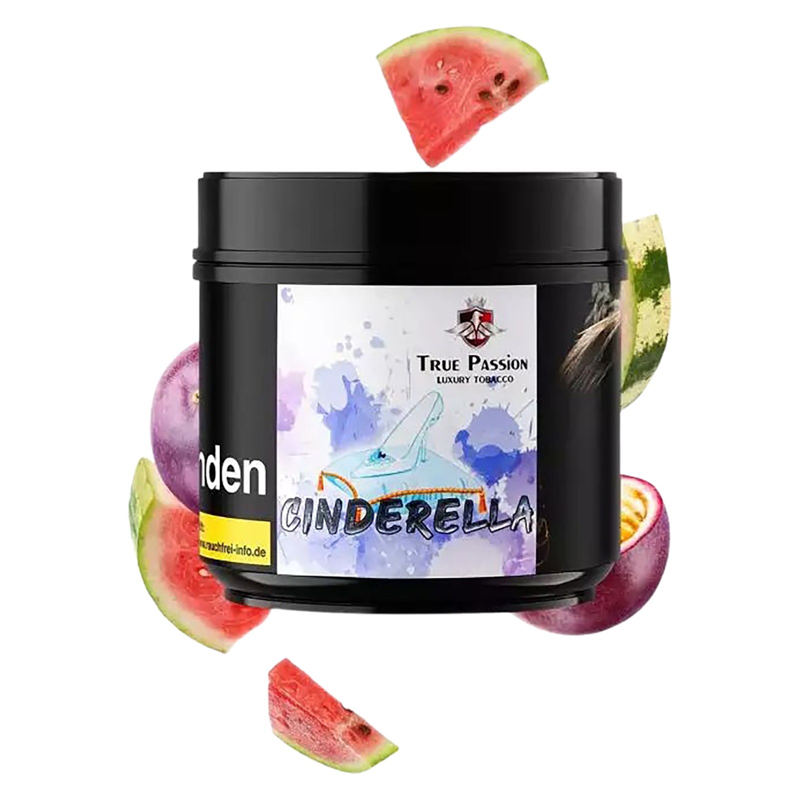 Die Geschmacksrichtung „Cinderella“ überzeugt mit einer perfekt abgestimmten Kombination sonnengereifter Früchte: Saftige Wassermelone, süße Honigmelone und exotische Maracuja ergeben ein harmonisches Zusammenspiel, das jeden Zug zu einem fruchtigen Highlight macht. Der intensive Geschmack bleibt auch bei längeren Sessions stabil und entfaltet seine Aromen optimal – ein Zeichen für die hohe Verarbeitungsgüte von True Passion Shisha Tabak.