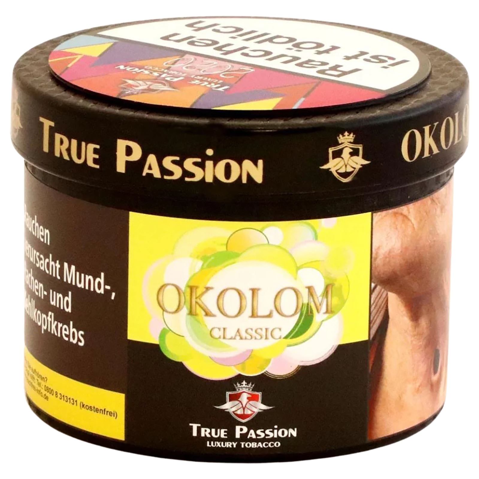 True Passion 200g - Okolom ist ein Tabakerzeugnis der Marke True Passion und wird in einer Verpackung mit einem deklarierten Inhalt von 200g angeboten.