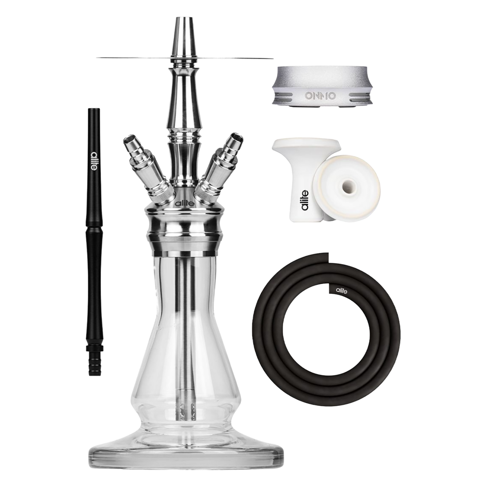 Ein weiteres Highlight ist der mitgelieferte ONMO HMD in Silber, der perfekt mit dem mitgelieferten Tabakkopf harmoniert. Der Heat Management Device sorgt für eine konstante Wärmeregulierung und längeren Rauchgenuss ohne häufiges Nachlegen von Kohle – ein unverzichtbares Zubehör für jeden ambitionierten Shisha-Nutzer.