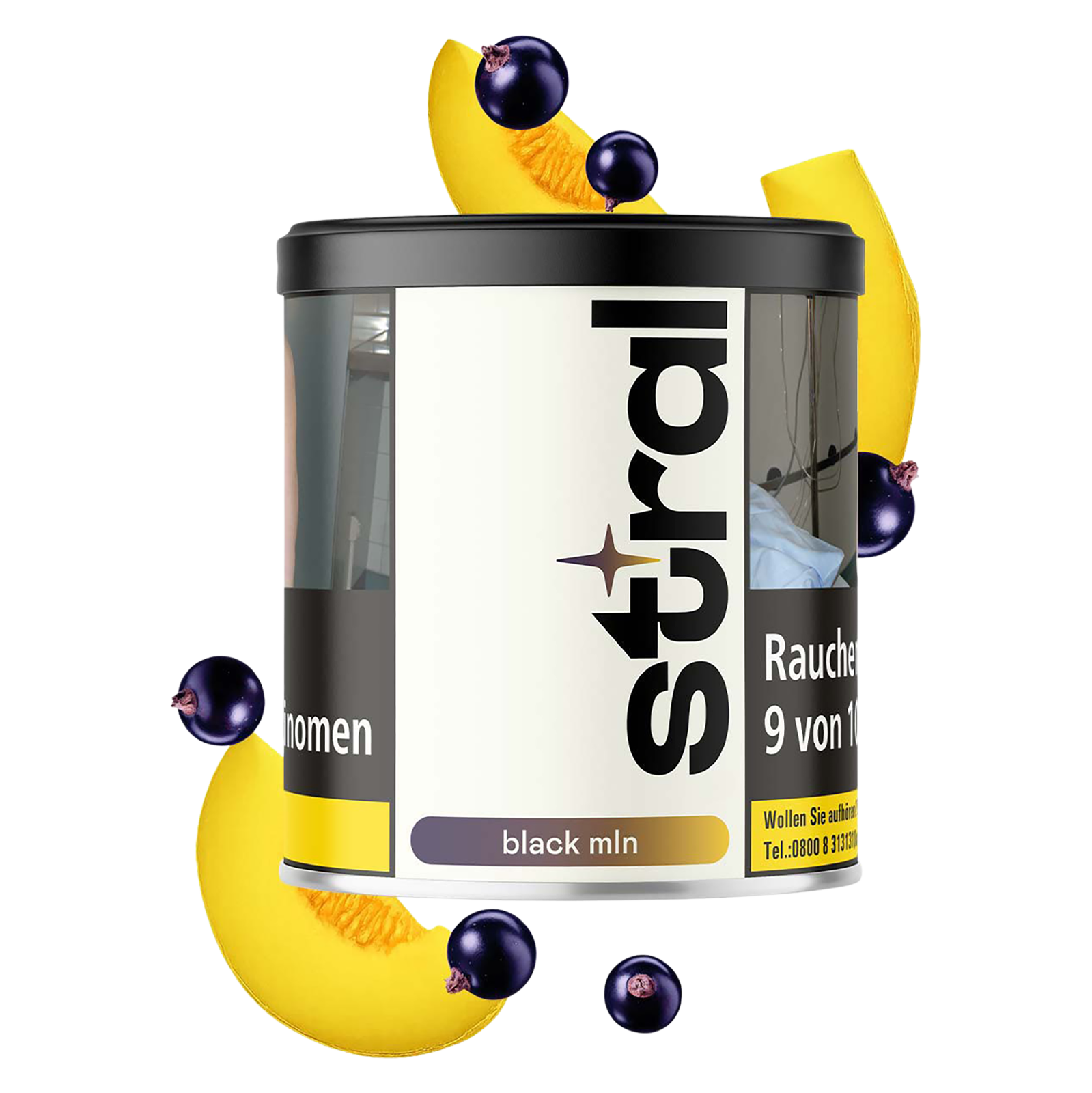 stral 200g - Black Mln ist ein hochwertiger Shisha Tabak aus dem Hause stral, der mit einem ausgewogenen Virginia-Blend überzeugt. Die Sorte kombiniert das süßlich-frische Aroma von Honigmelone mit der intensiven Fruchtigkeit schwarzer Johannisbeere und sorgt damit für ein außergewöhnlich rundes Geschmackserlebnis bei jeder Session mit der Wasserpfeife.